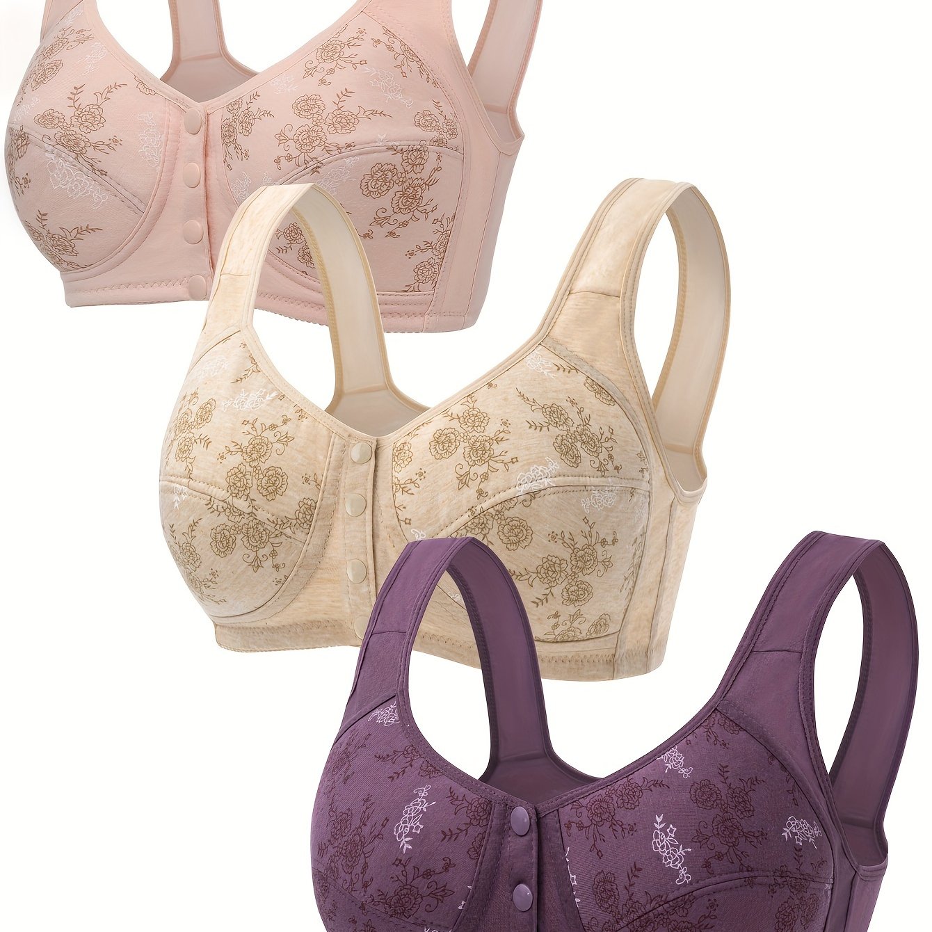 TEMU 3pcs Front Closure Underwear Bras, , Stylish ...