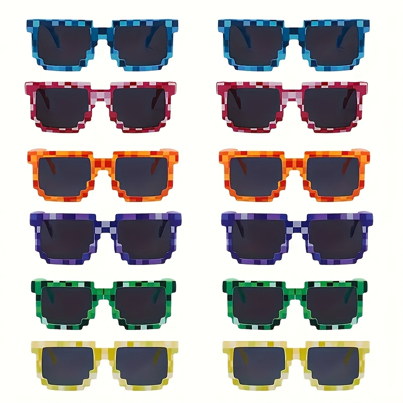 TEMU Pack Of 12 Pixel Glasses - Plastic Miner Them...