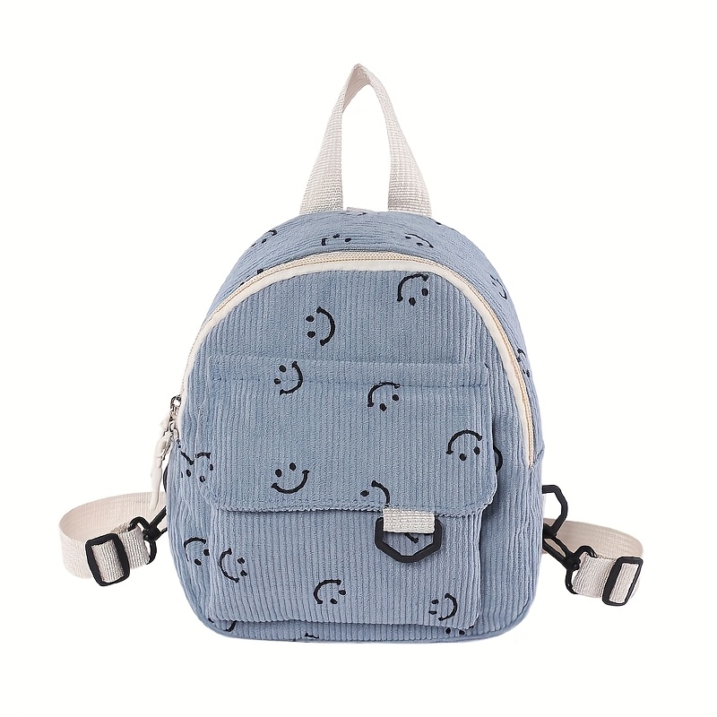 TEMU Mini Canvas Backpack With Face Pattern - Ligh...