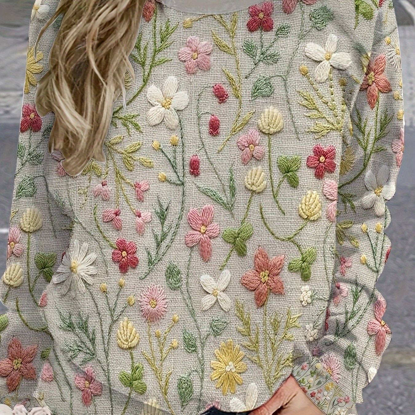 TEMU Women's Casual Floral Print Sweatshirt - Desi...