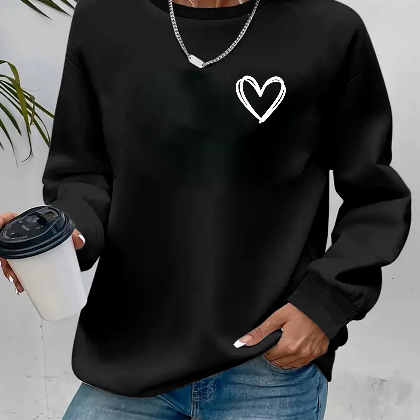 TEMU Heart Neck Pullover Sweatshirt, Casual Drop S...