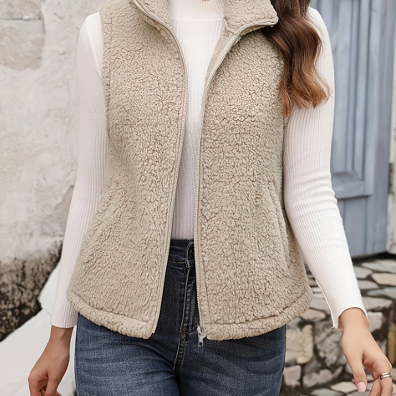 TEMU Elegant Polyester Fur Vest For Women With Zip...