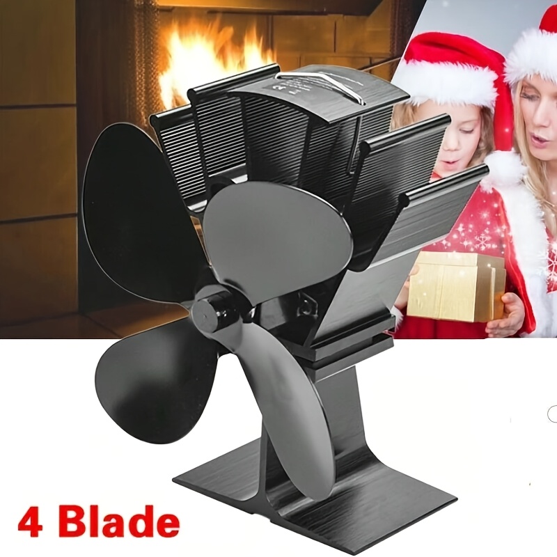 TEMU 4-blade Heat Powered Stove Fan For Wood & Pel...