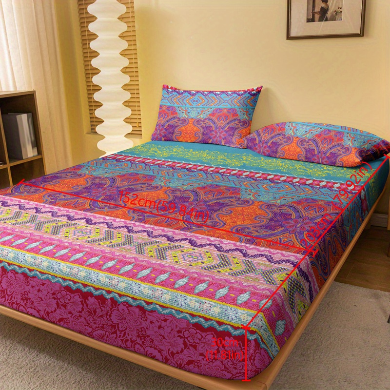 TEMU 1pc Bohemian Print Fitted Sheet, Soft Comfort...