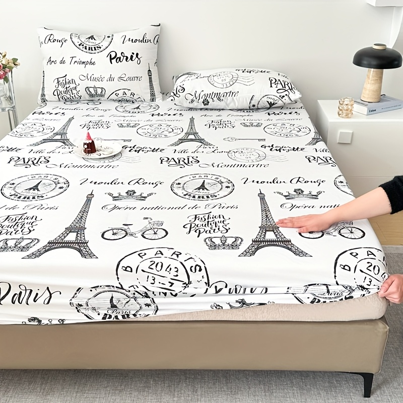TEMU Paris Print Fitted Sheet - Soft Brushed Fabri...
