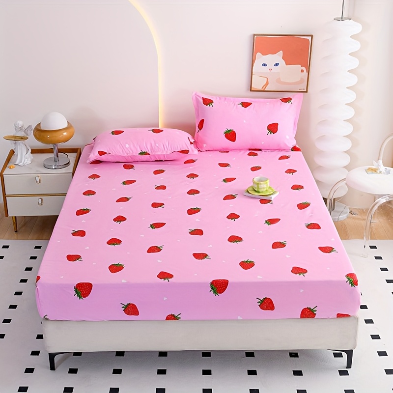 TEMU 1pc Strawberry Love Print Fitted Sheet, 100% ...