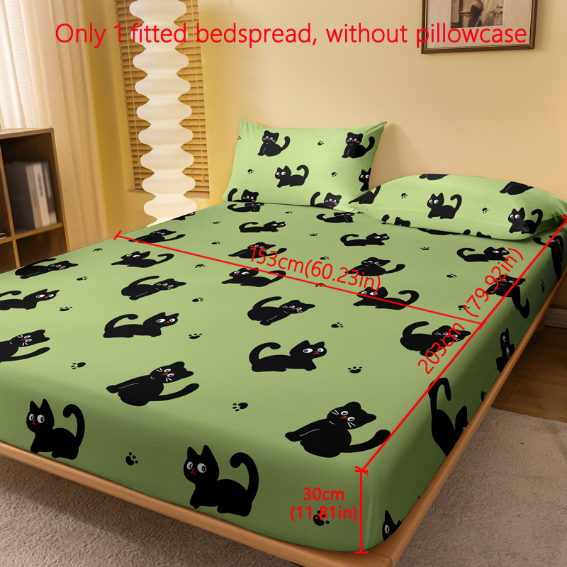 TEMU Cute Cartoon Black Cat Print Fitted Sheet - S...