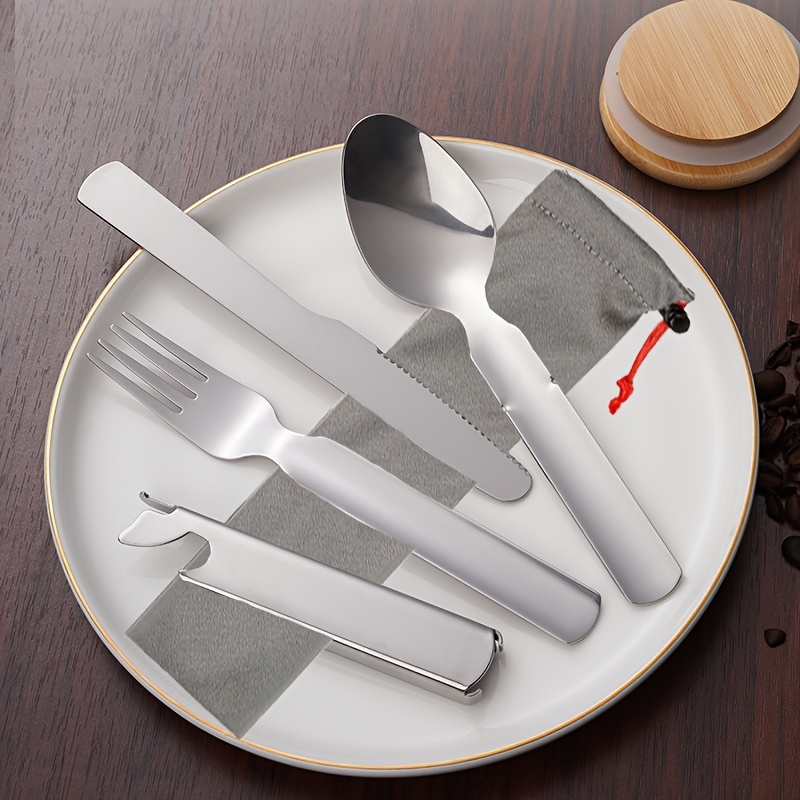 TEMU 5pcs Portable Stainless Steel Cutlery Set, In...