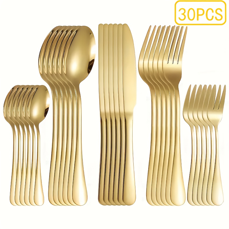 TEMU 30pcs Golden Stainless Steel Cutlery Set - Er...