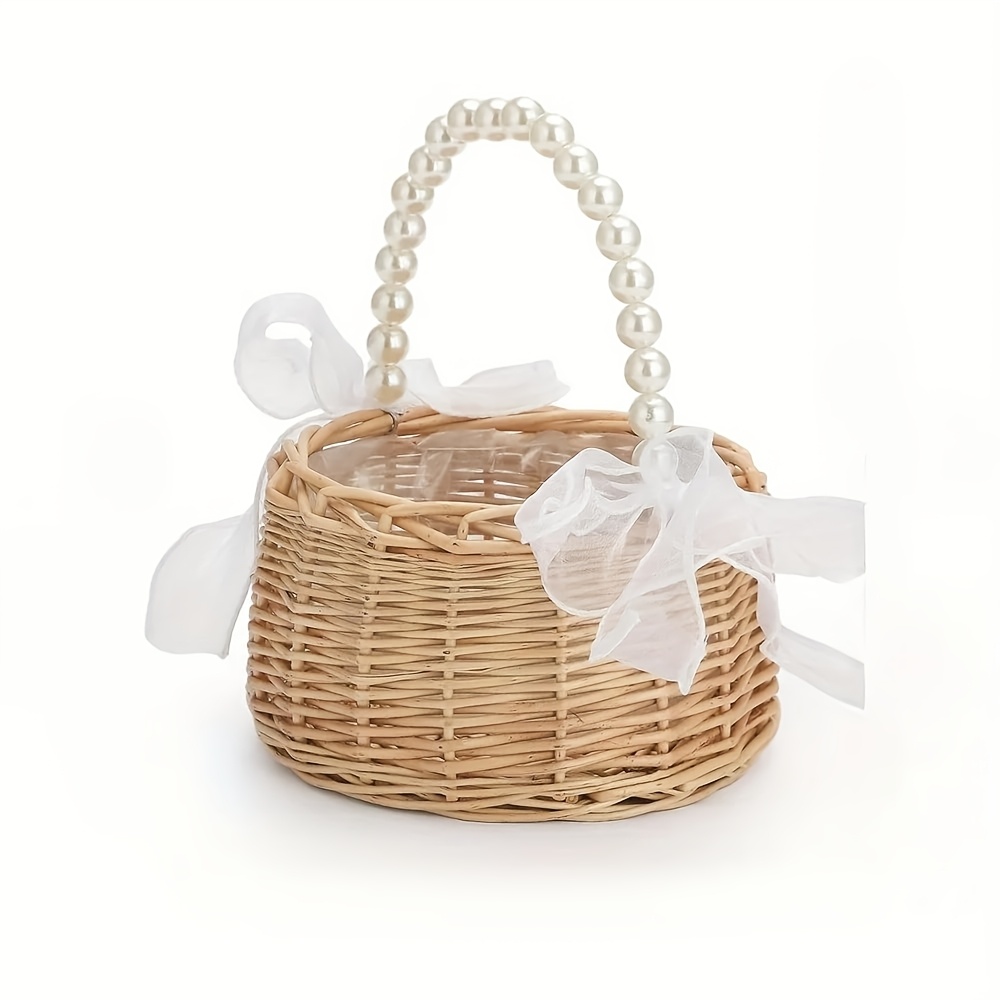 TEMU Rattan Flower Girl Basket With Pearl Handles ...