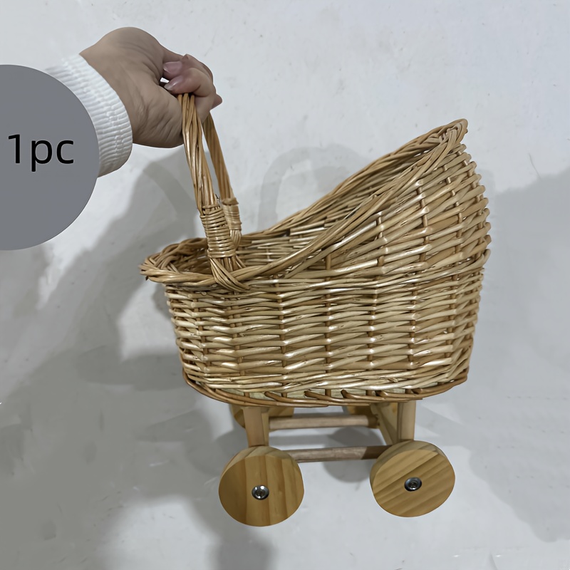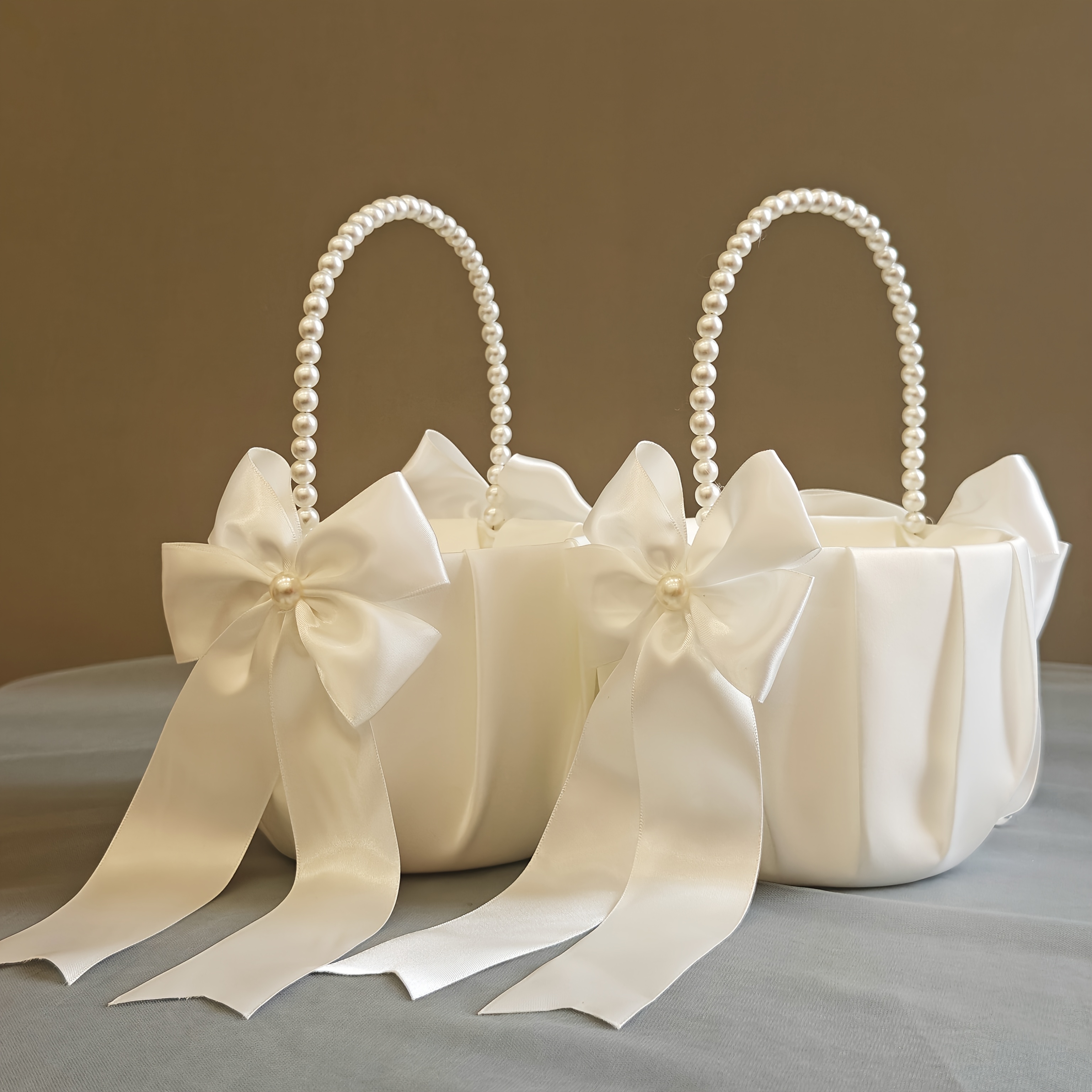 TEMU 1pc Rattan Basket With Pearl Handles And Bow ...