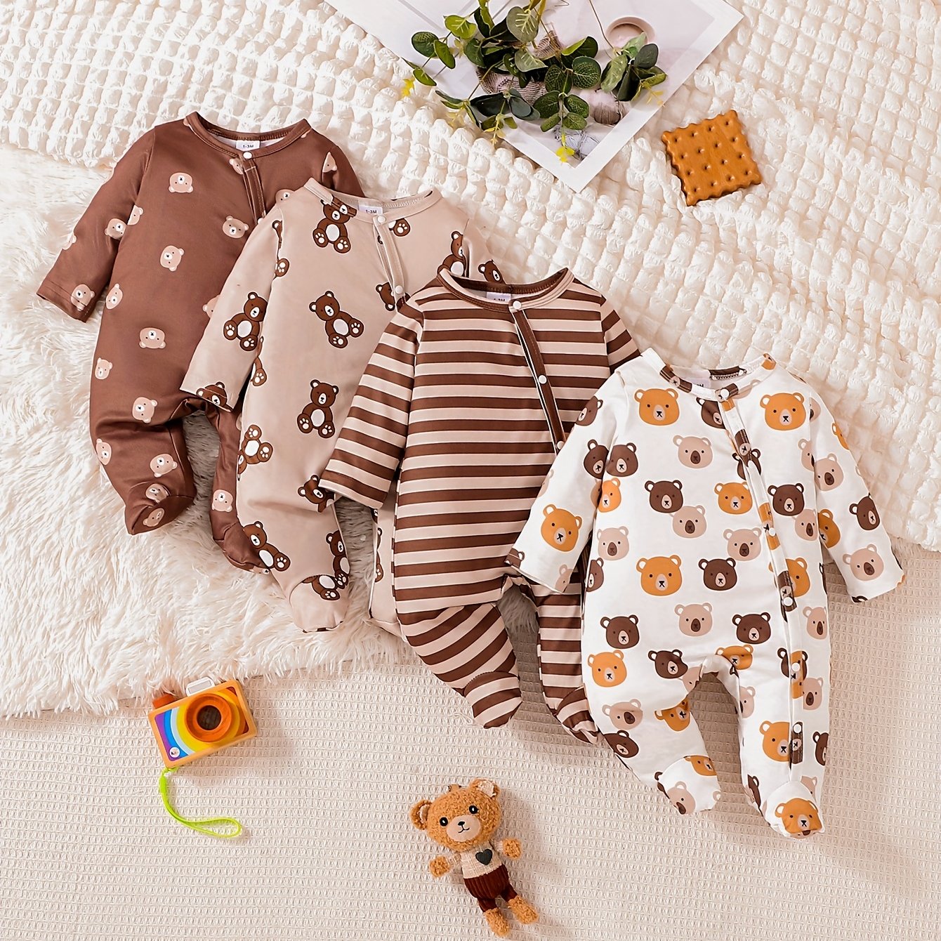 TEMU Stylish 4pcs Set: Newborn Cute Print Long-sle...