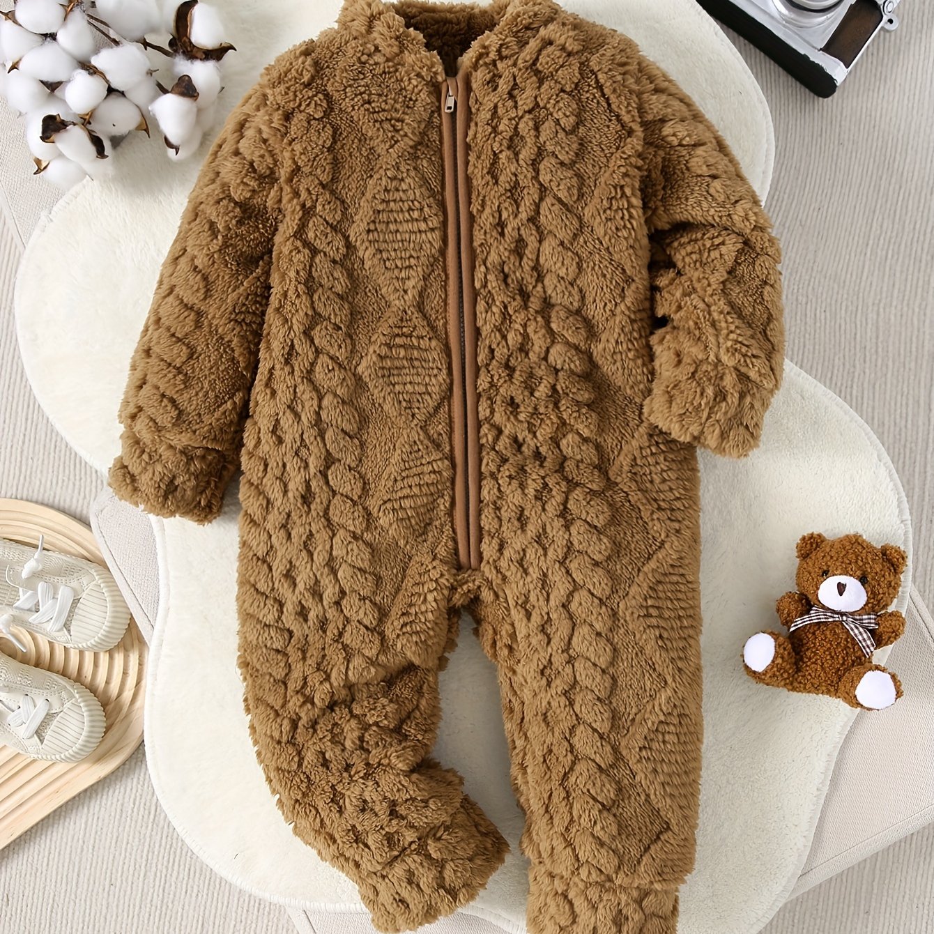TEMU Cozy Fleece Diamond-quilted Long Sleeve Rompe...