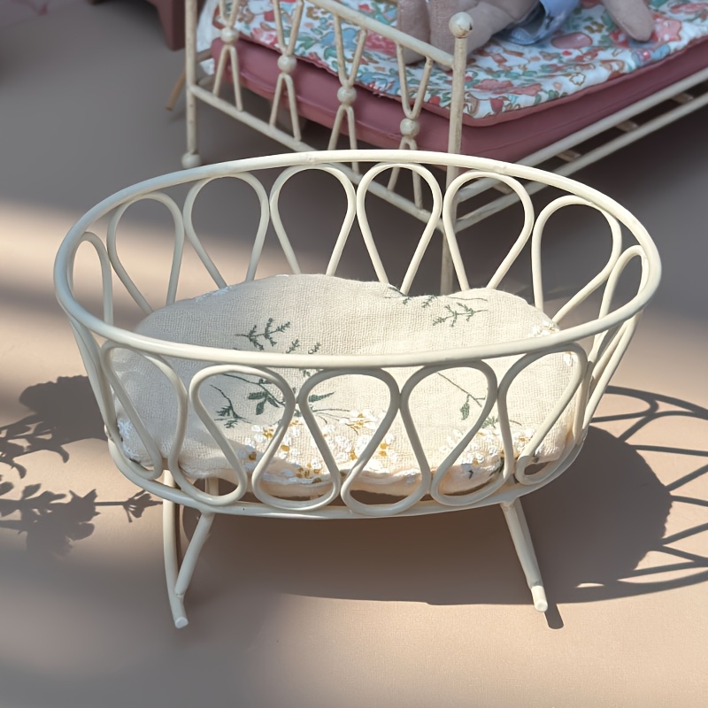 TEMU 1:8 Scale Mini Cast Iron Cradle With Beige Fl...