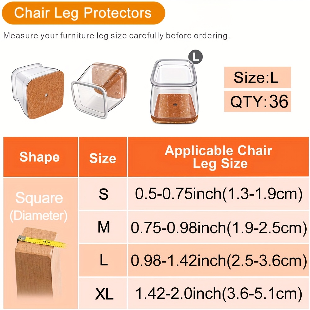 TEMU 36pcs Chair Leg Floor Protectors Square Clear...