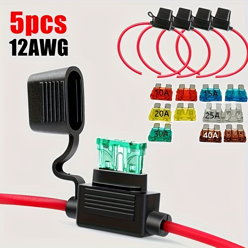 TEMU Set Of 5 Inline Fuse Holders For 12v Systems,...