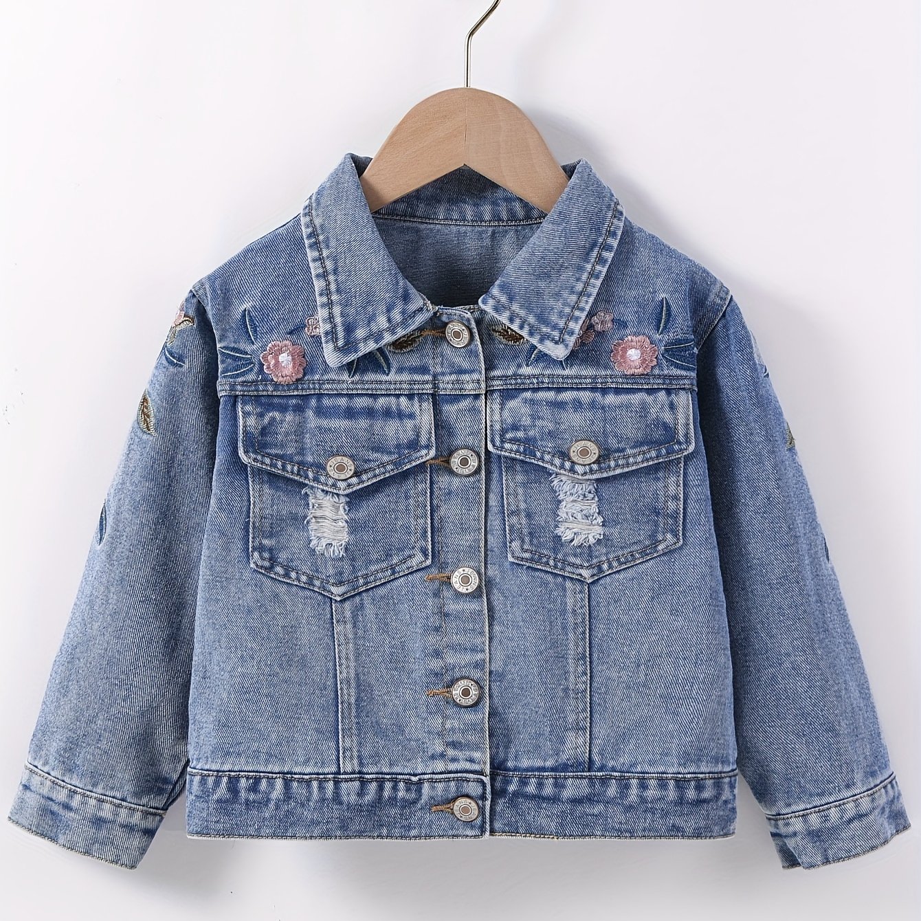 TEMU Girls' Denim Jacket With White Patches & Pink...