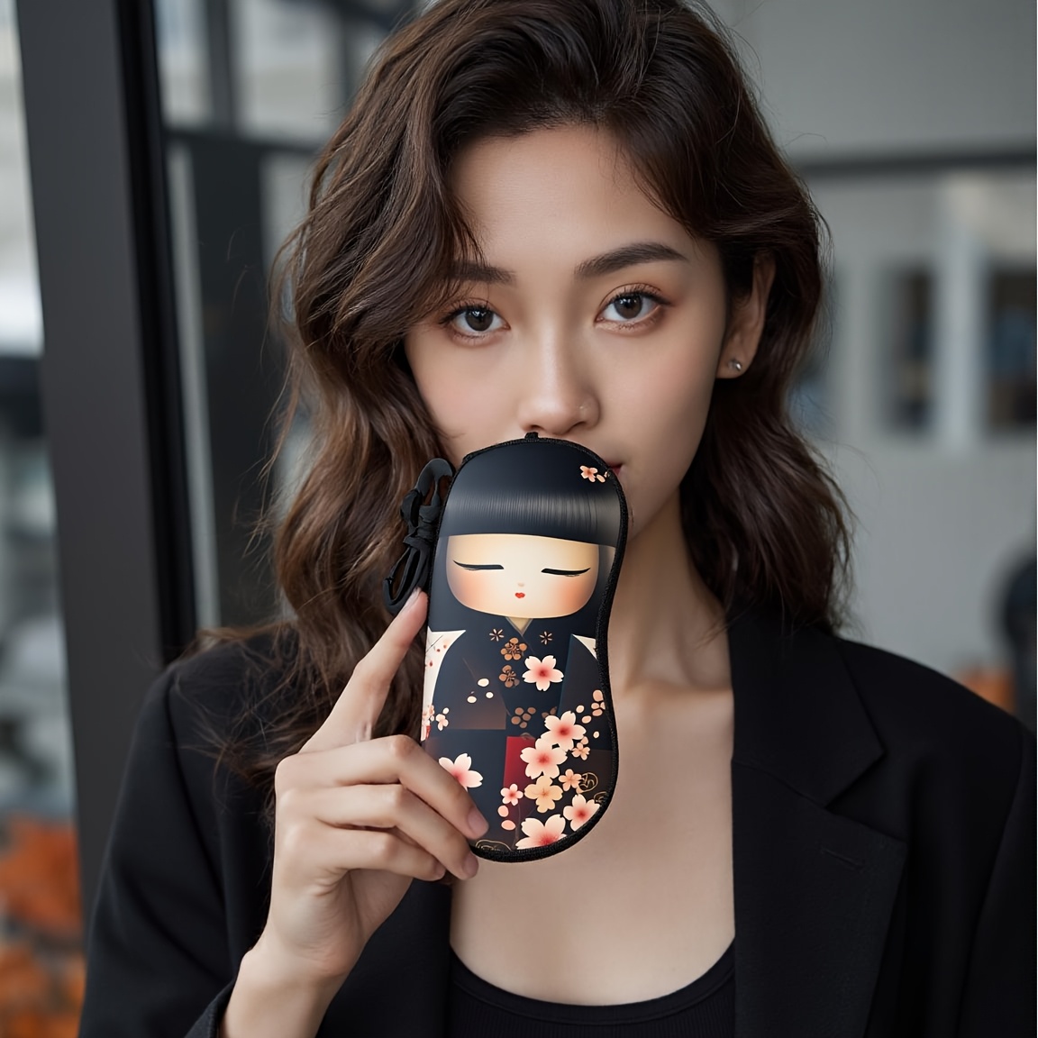 TEMU 1pc Kokeshi Dolls Rubber Eyeglass Case - Ligh...