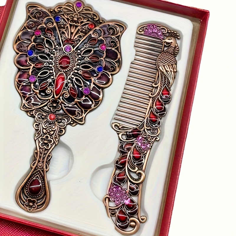 TEMU 2pcs/set Vintage Mirror And Comb Set, Flower ...