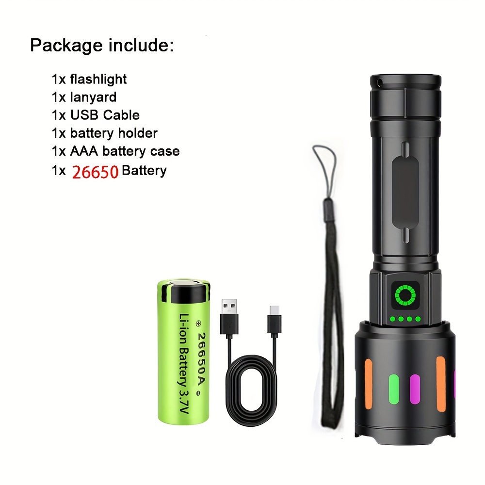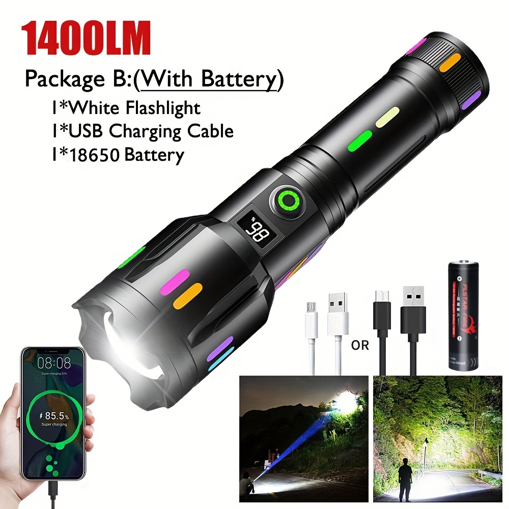 TEMU Rechargeable Zoom Flashlight With Power Displ...