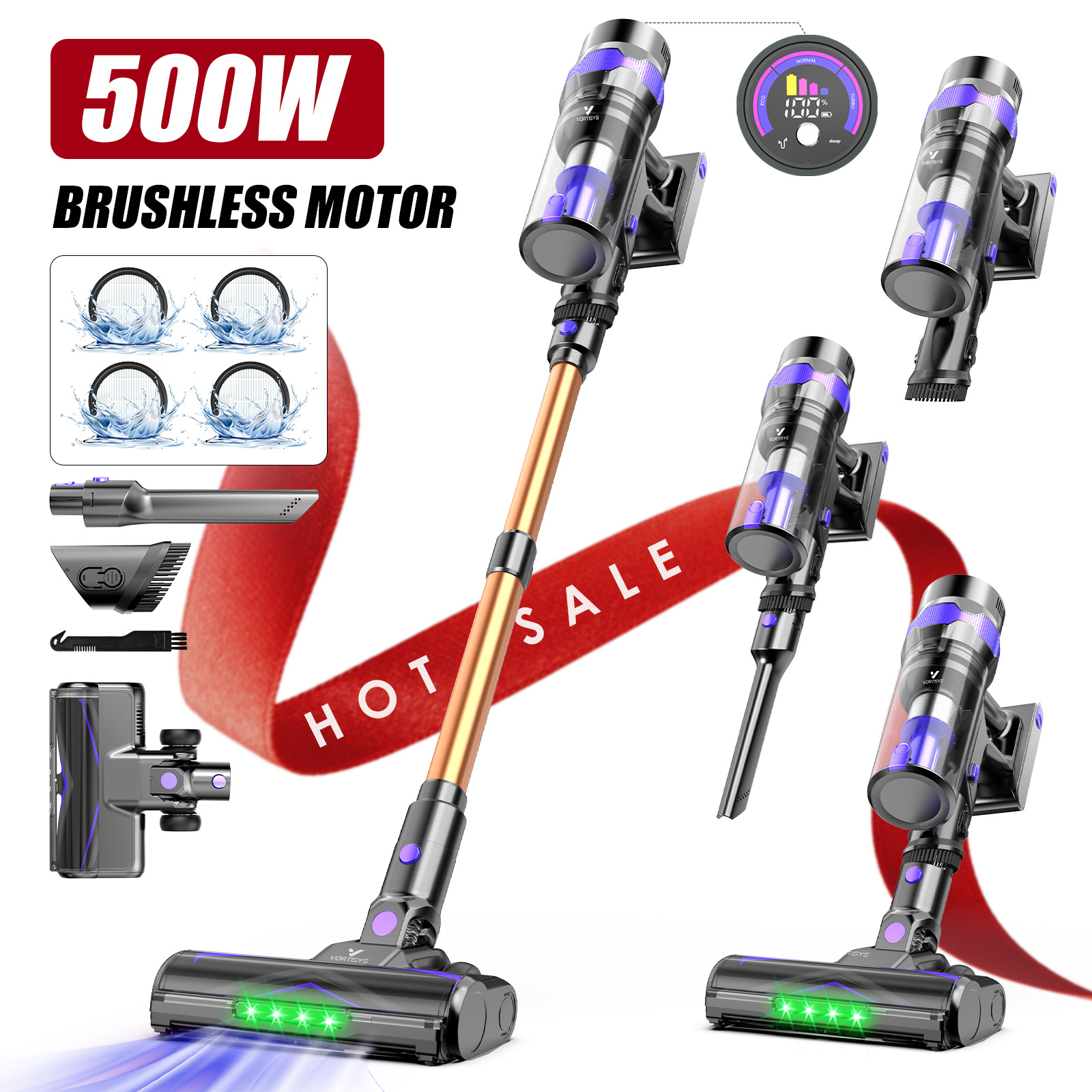 TEMU V2 Cordless Vacuum Cleaner, 500w, 60mins , 8*...