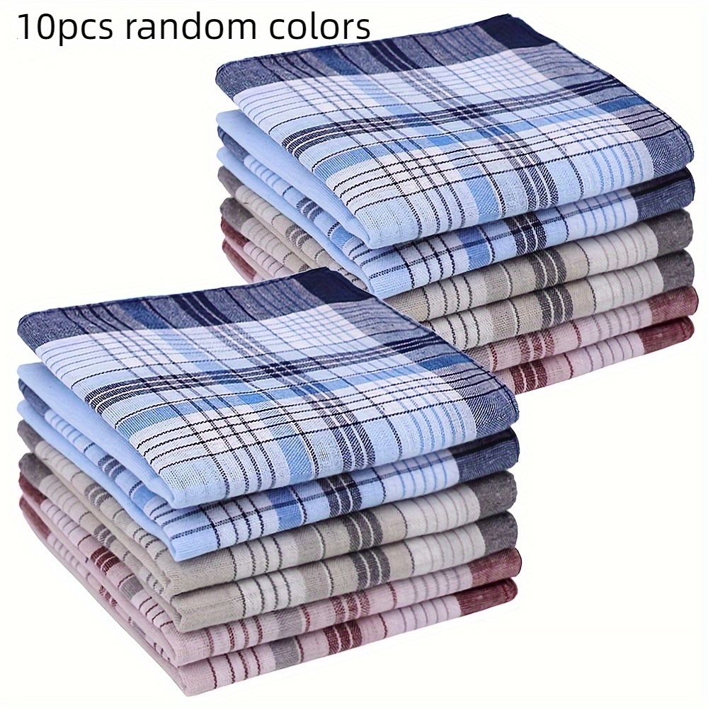 TEMU 6/10pcs Classic Vintage Men's Plaid Handkerch...
