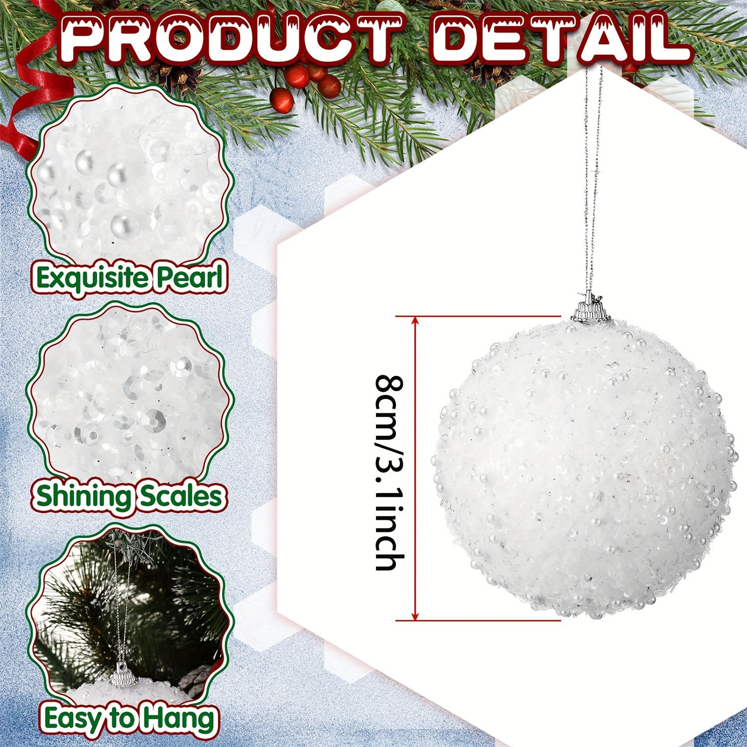 TEMU 6pcs 3.1" Glitter Christmas Ball Ornament Set...