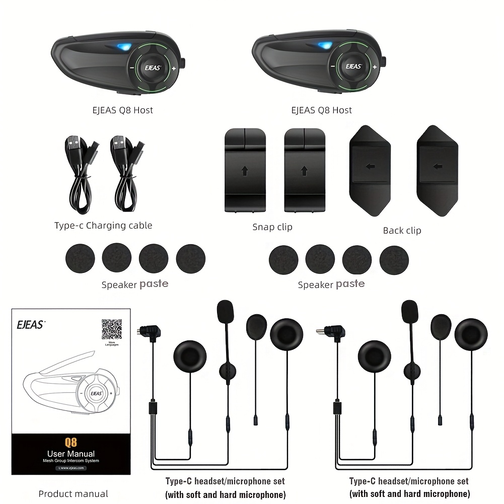 TEMU Ejeas Q8 Motorcycle Helmet Communication Inte...