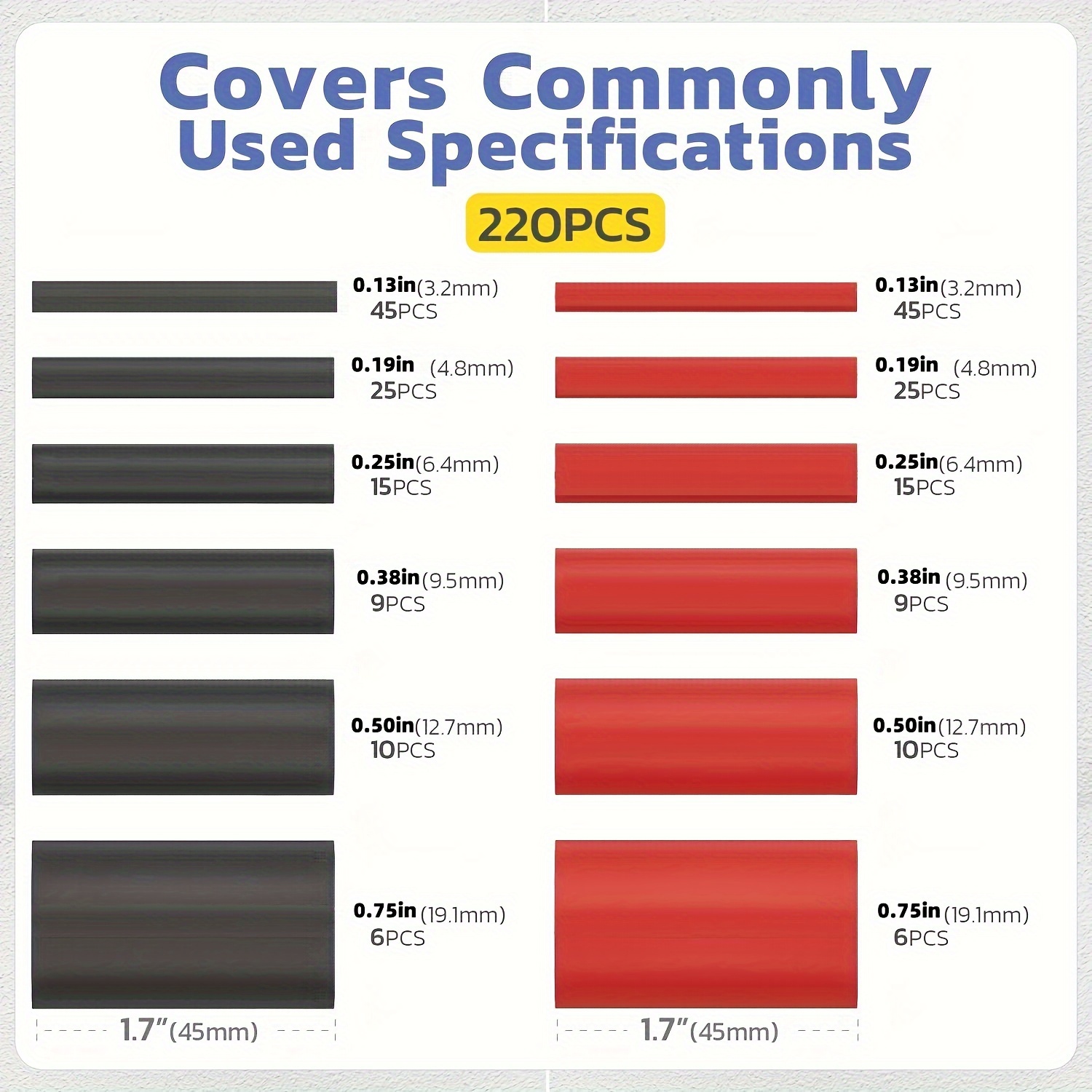 TEMU 3:1 Heat Shrink Tubing Kit, 1/8" - 1" 220, 20...