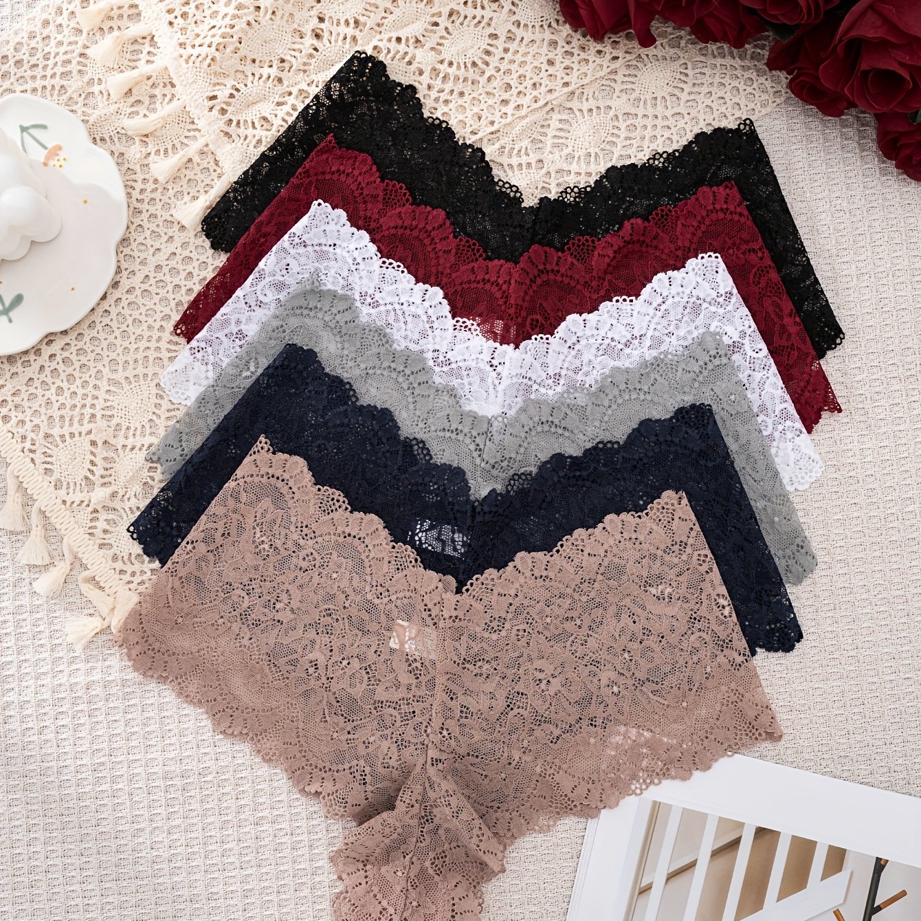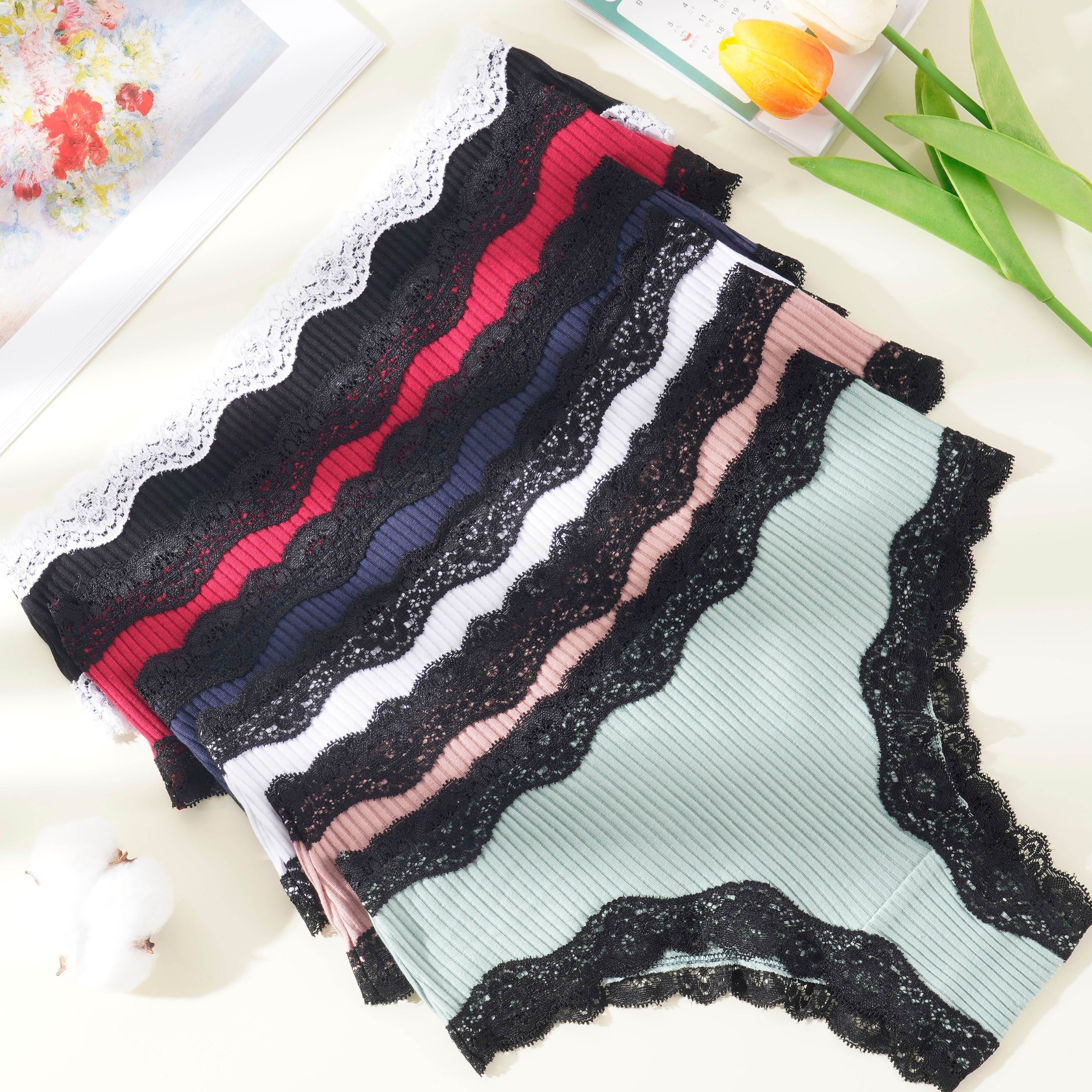 TEMU Sweet Lace Trim Panties, Breathable & Comfy B...