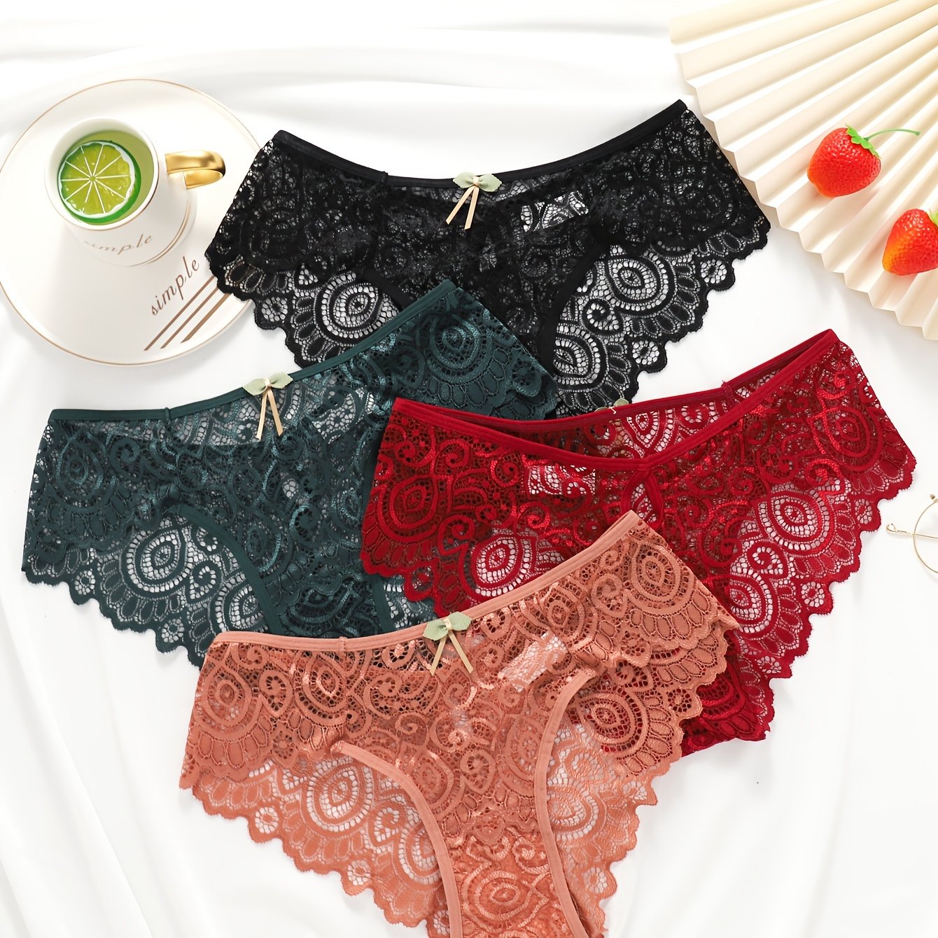 TEMU 4pcs Morvia Gothic Lace Hipster Panties For W...