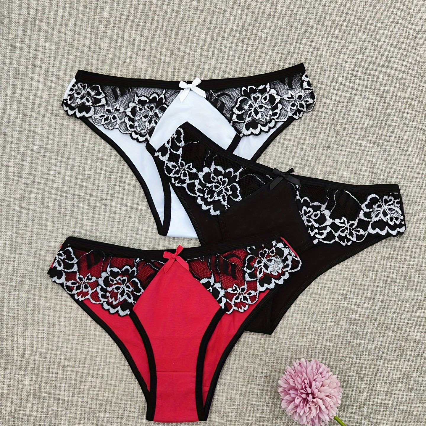 TEMU 3-pack Women's Lace Trim Low-rise Panties