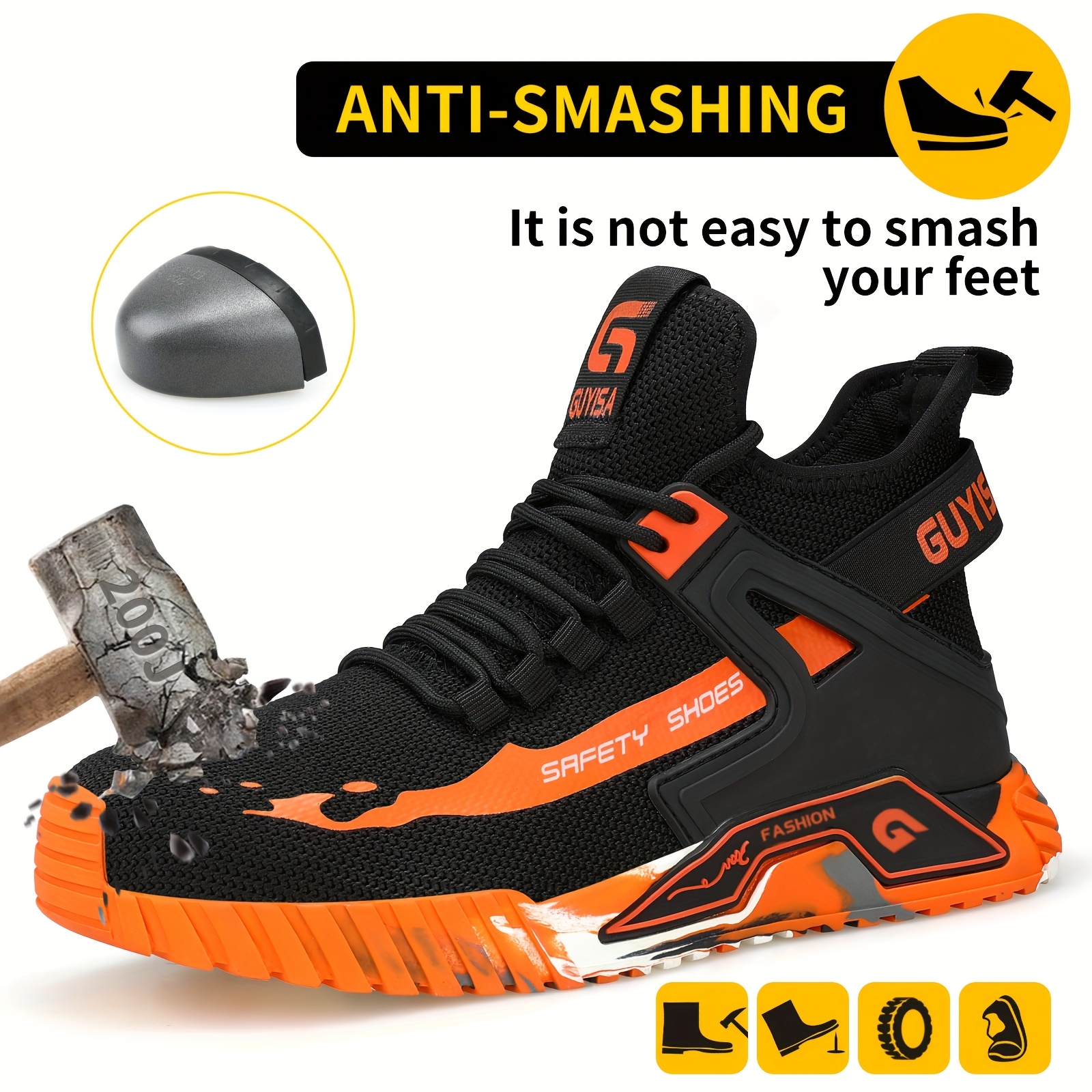 TEMU Guyisa Men's Heavy-duty Work Boots - Anti-sma...