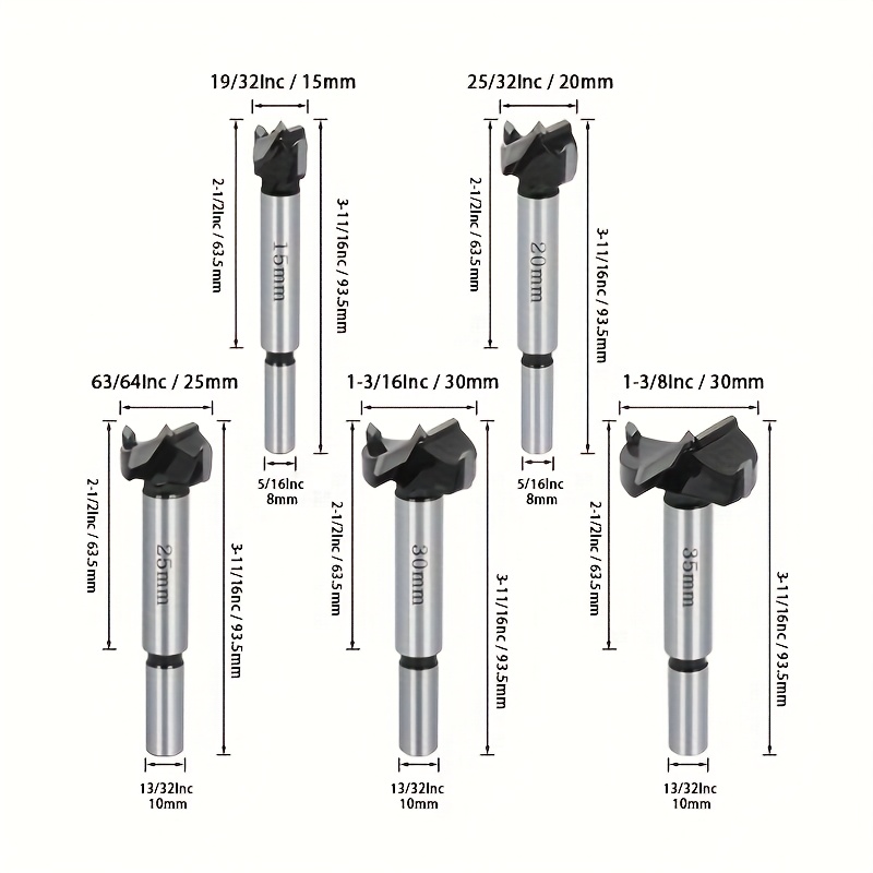 TEMU 5pcs Woodworking Kit - Drill Bit Set For Cabi...