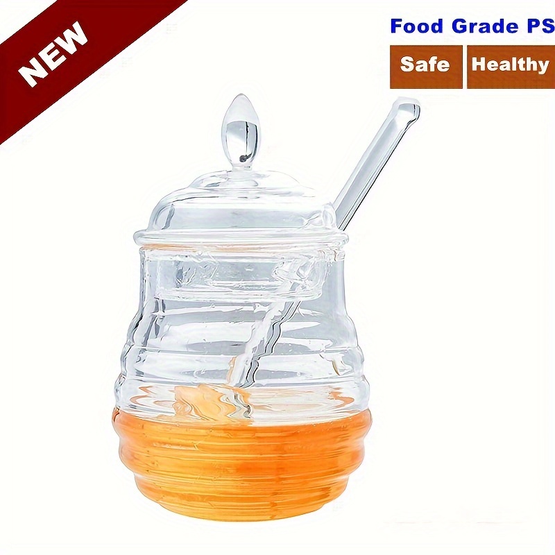 TEMU 1pc Transparent Plastic Honey Jar With Stirri...