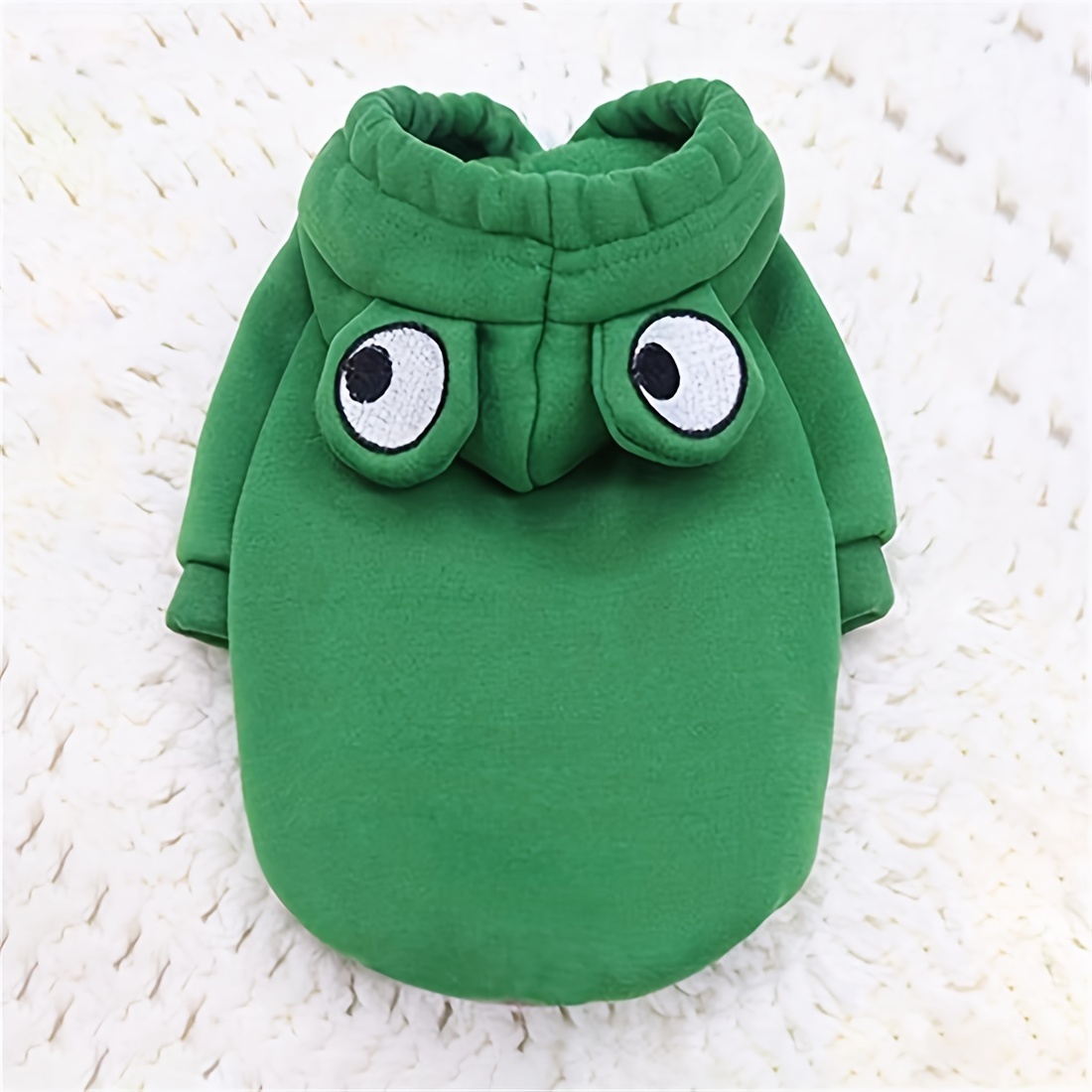 TEMU Frog-themed Fleece-lined Dog Hoodie - Polyest...