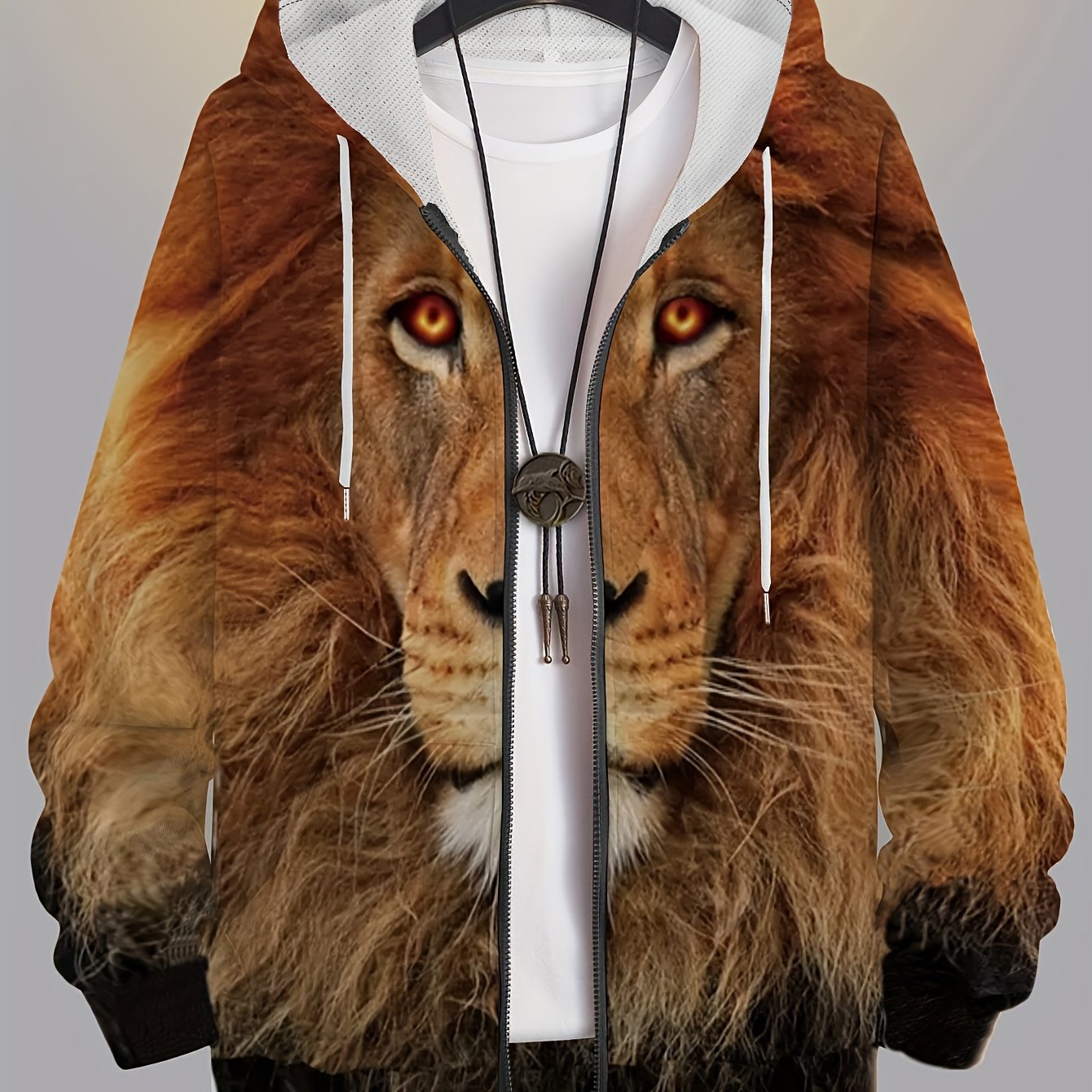 TEMU Mi-inspired Lion Graphic Hoodie - Soft Polyes...