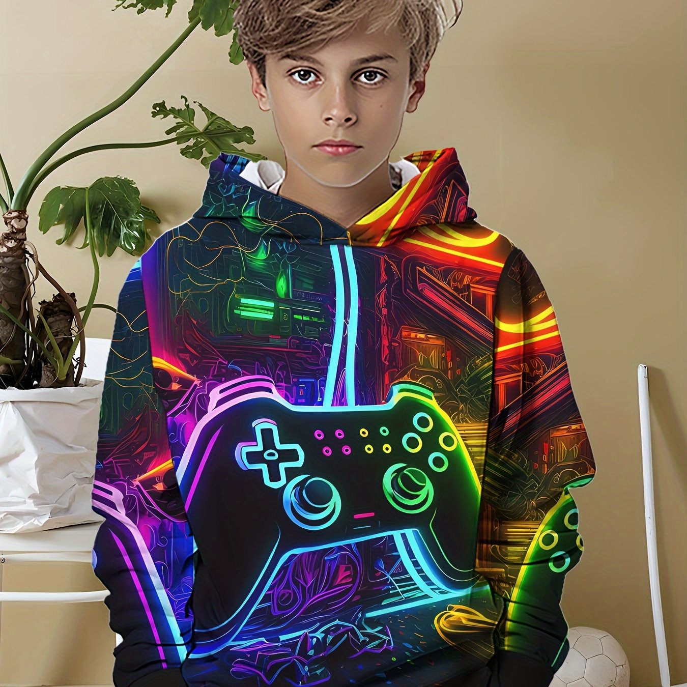 TEMU Boys' Fluorescent Gaming Console Print Hoodie...