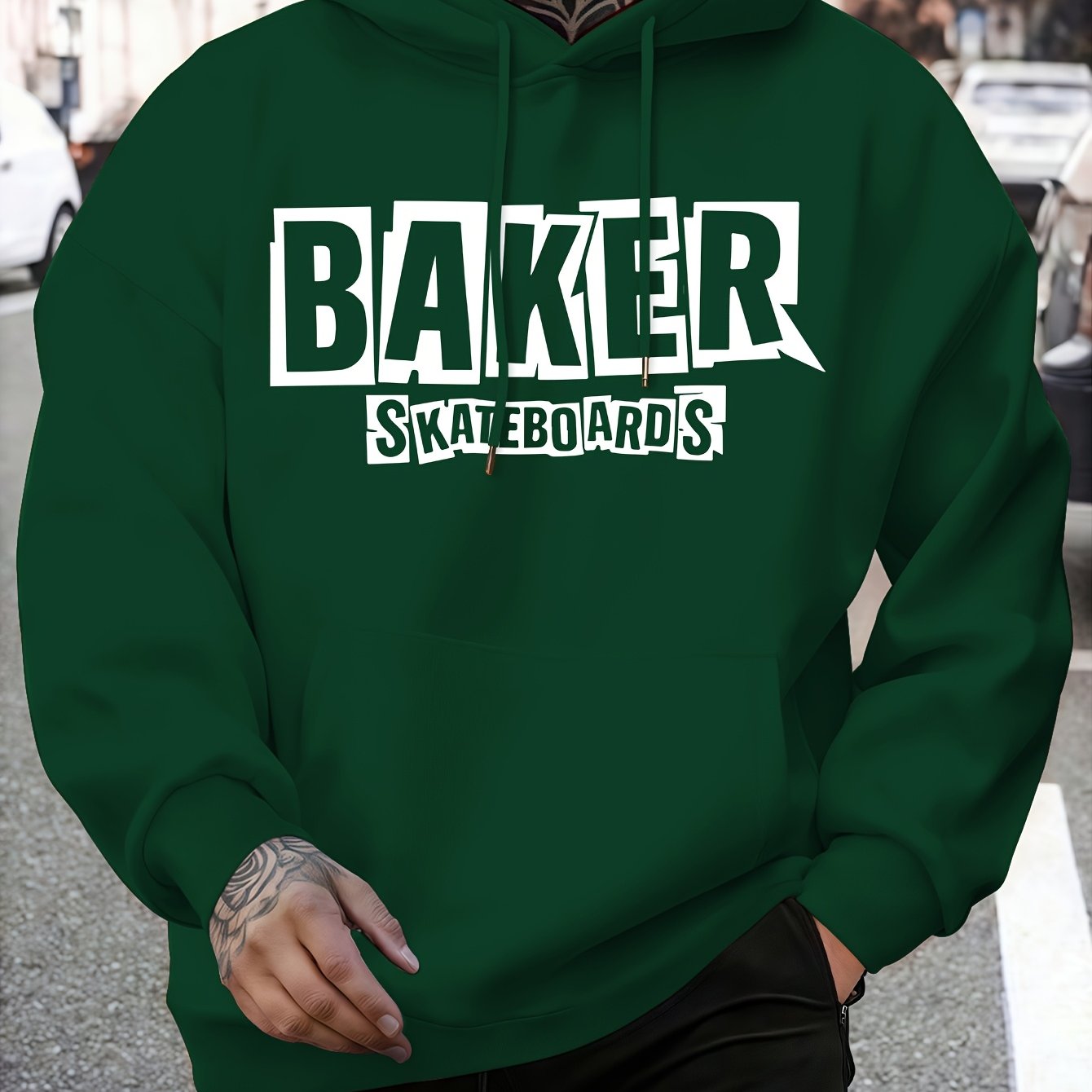 TEMU Men's Trendy "baker Skateboa Ds" Print Hoodie...