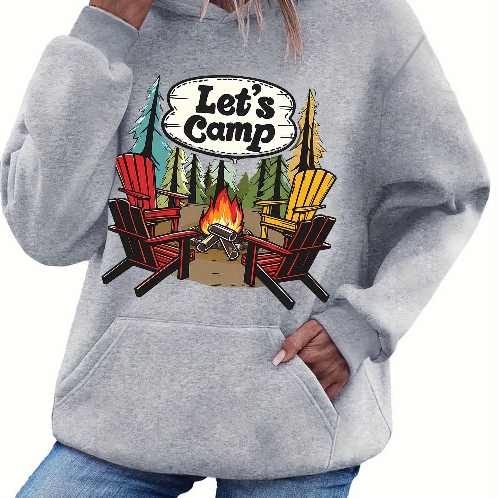 TEMU Women's Let' Graphic Hooded Sweatshirt - Cozy...
