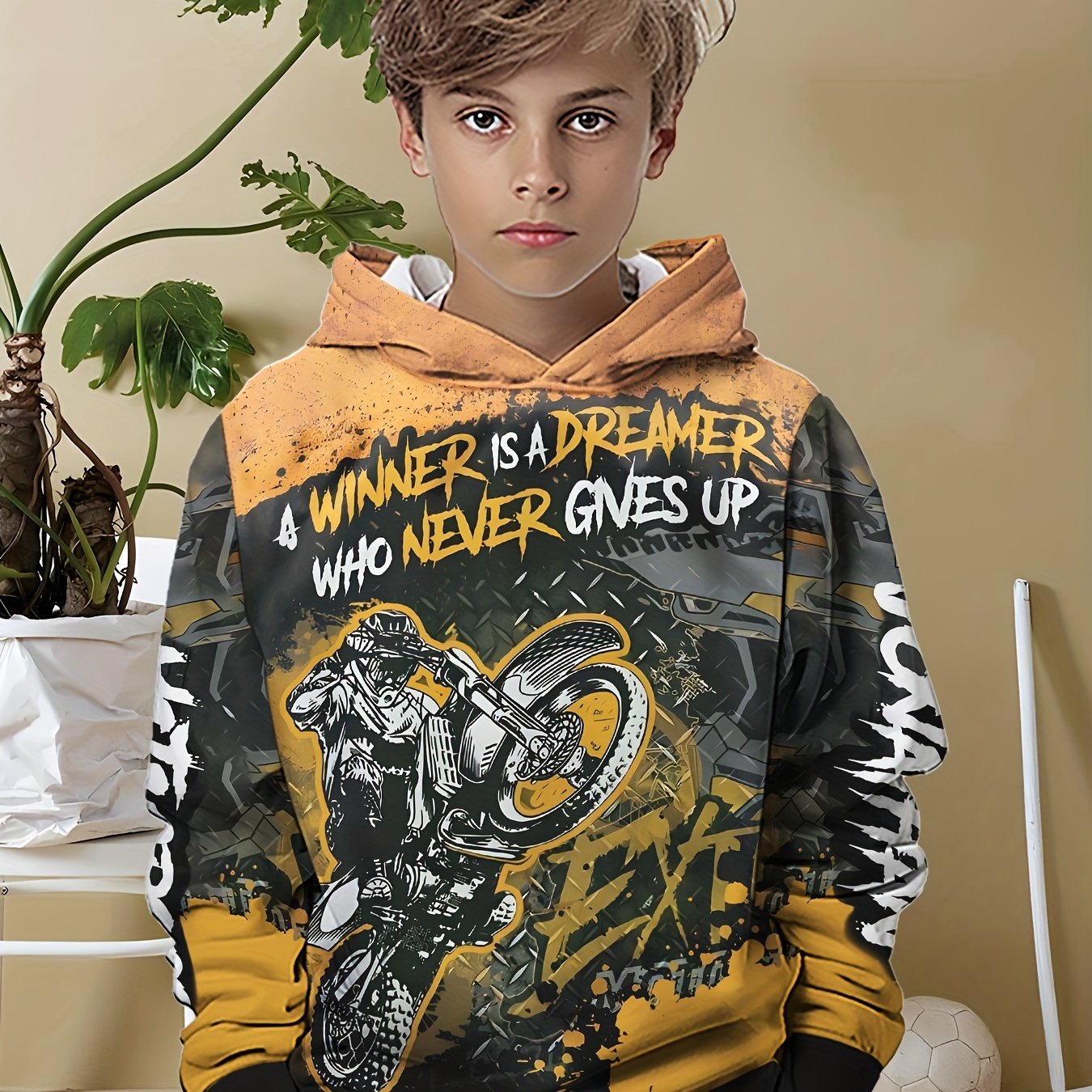 TEMU Boys' Motorcycle Rider Graphic Hoodie - "4 Wi...