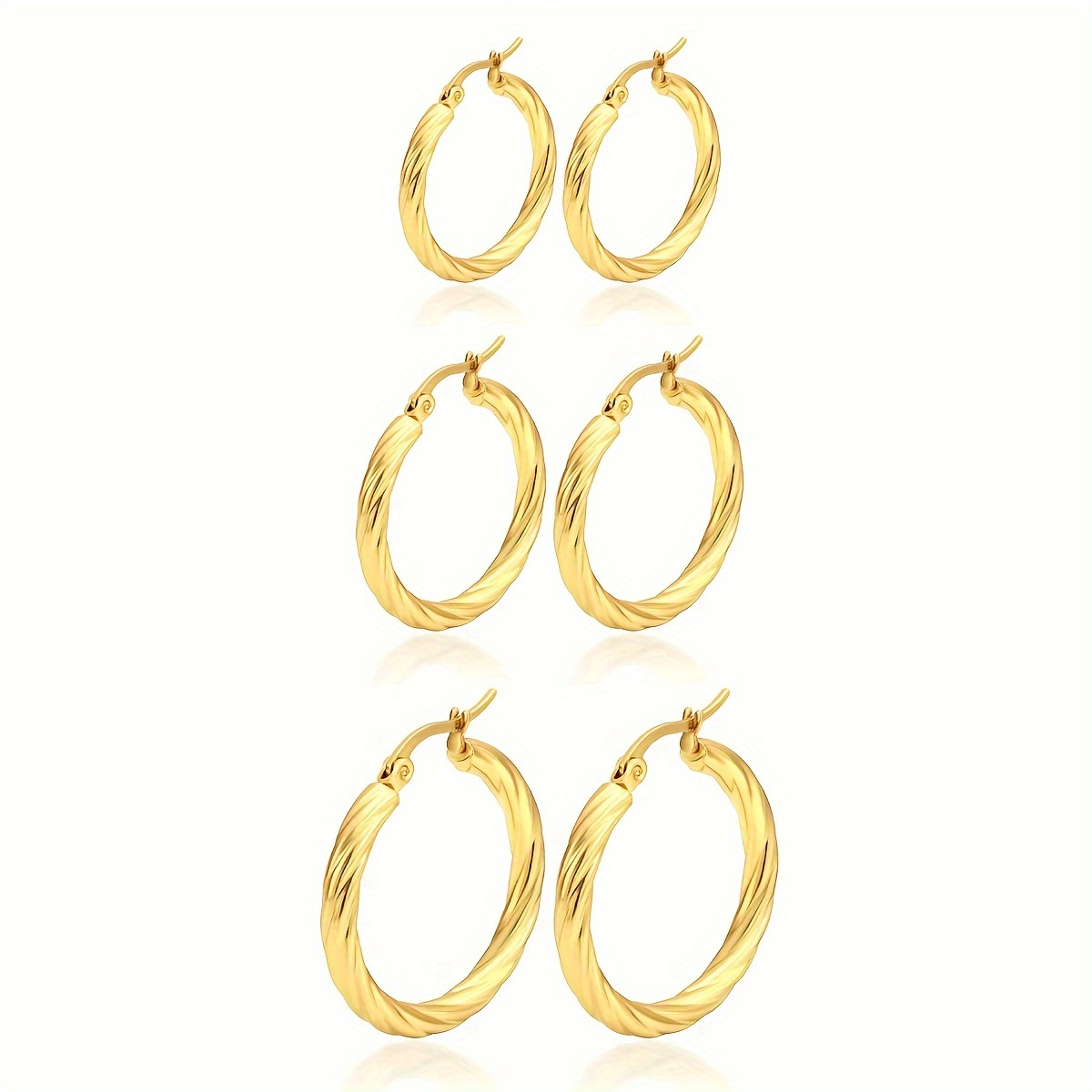 TEMU 3pcs Stainless Steel 18k Golden Plated Hoop E...