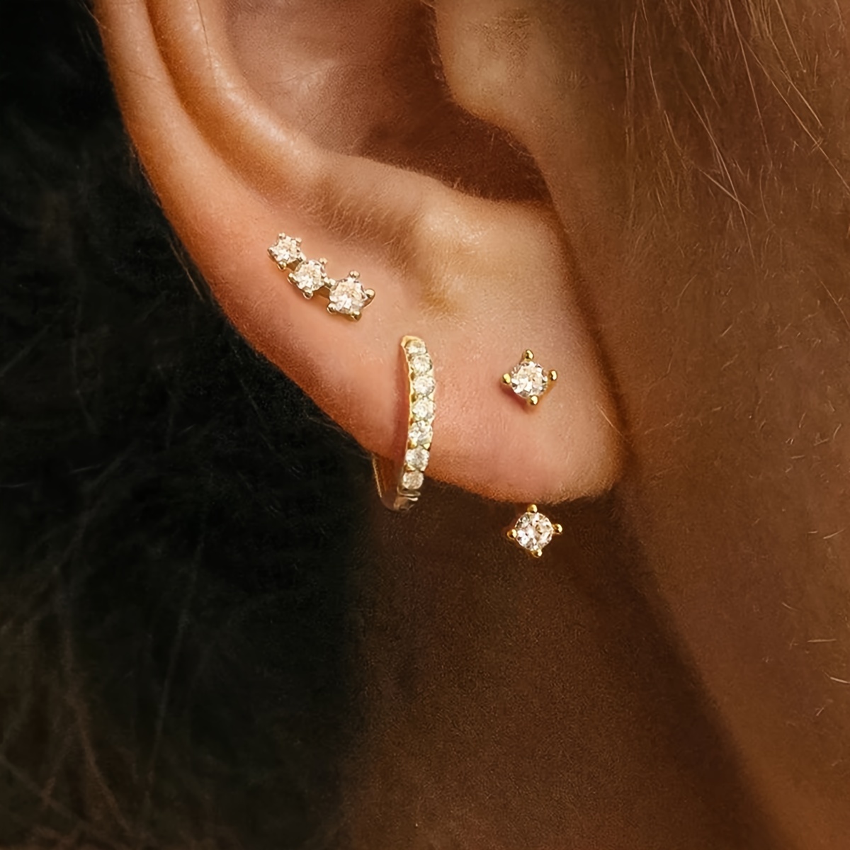 TEMU Elegant Silvery & Golden Zirconia Hoop Earrin...