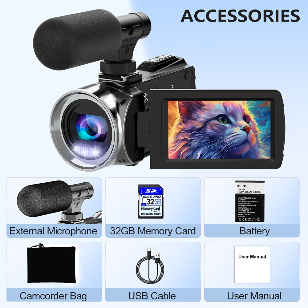 TEMU 4k Hd Video Camera Camcorder With External Mi...