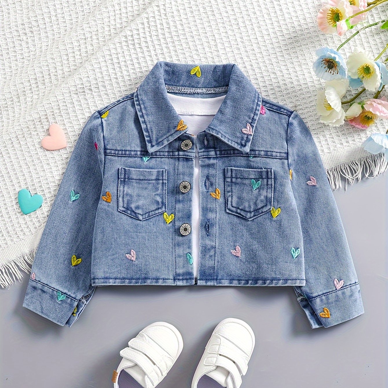 TEMU Adorable Denim Short Jacket For Girls - Patte...