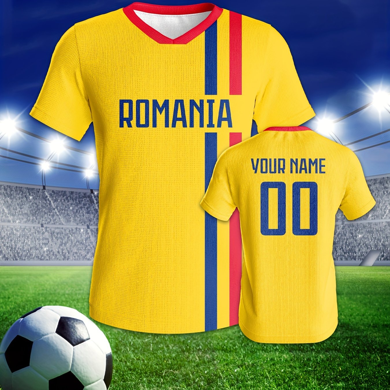TEMU Custom Romanian Men's Soccer Jersey - Breatha...