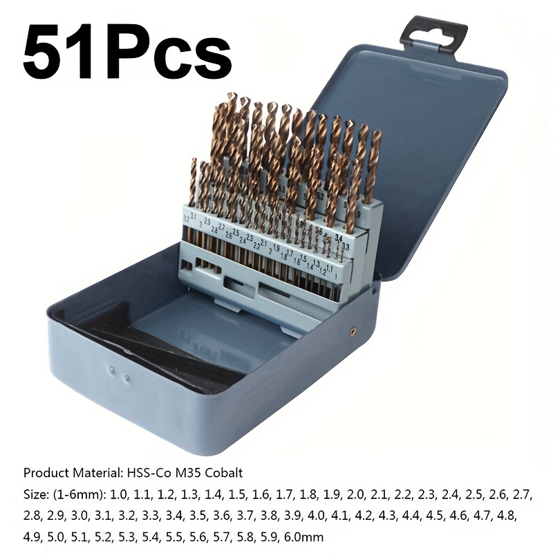 TEMU 51pcs Cobalt Drill Bit Set, M35 Steel Twist D...