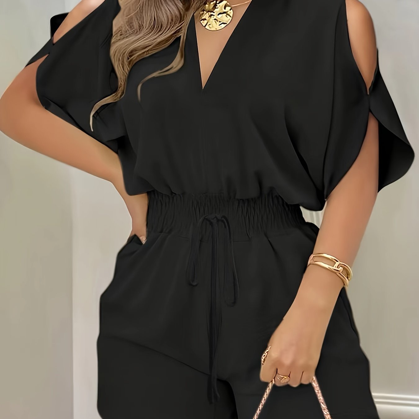 TEMU Einfarbiger Playsuit mit V-Ausschnitt, elegan...