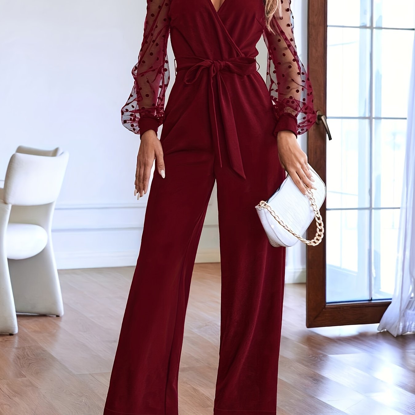 TEMU Polka Dots Pattern Jumpsuit, Elegant V Neck L...