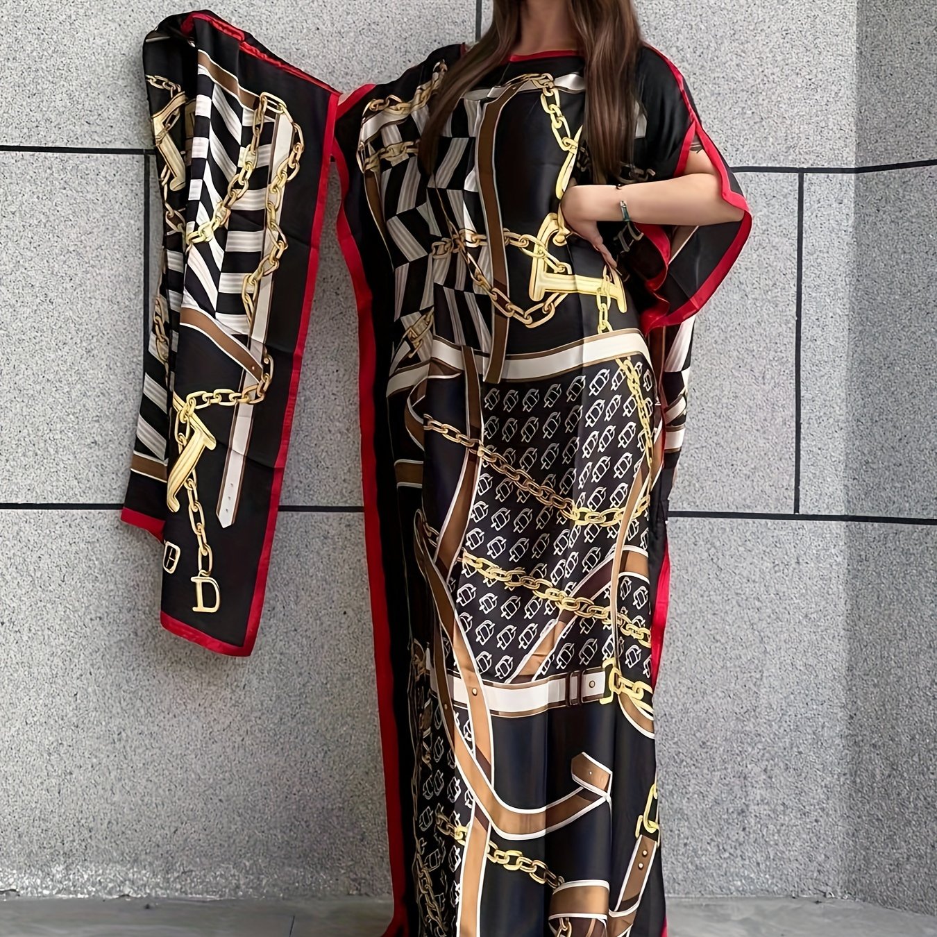 TEMU Chain Print Boat Neck Modest Dress, Elegant B...